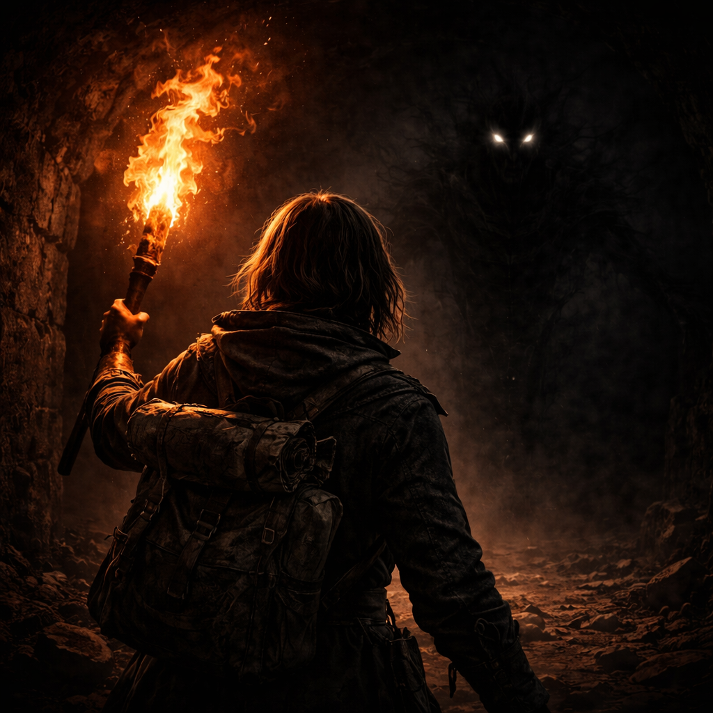You wake up in a hostile forest swallowed by darkness, searching for your missing wife. To survive, you must manage your torch fuel, stay close to campfires, avoid deadly ghosts, collect map fragments, and gather resources for upgrades. As you slowly piece the map together, your goal becomes clear: find your wife in the dark and escort her safely back to base before the light runs out.